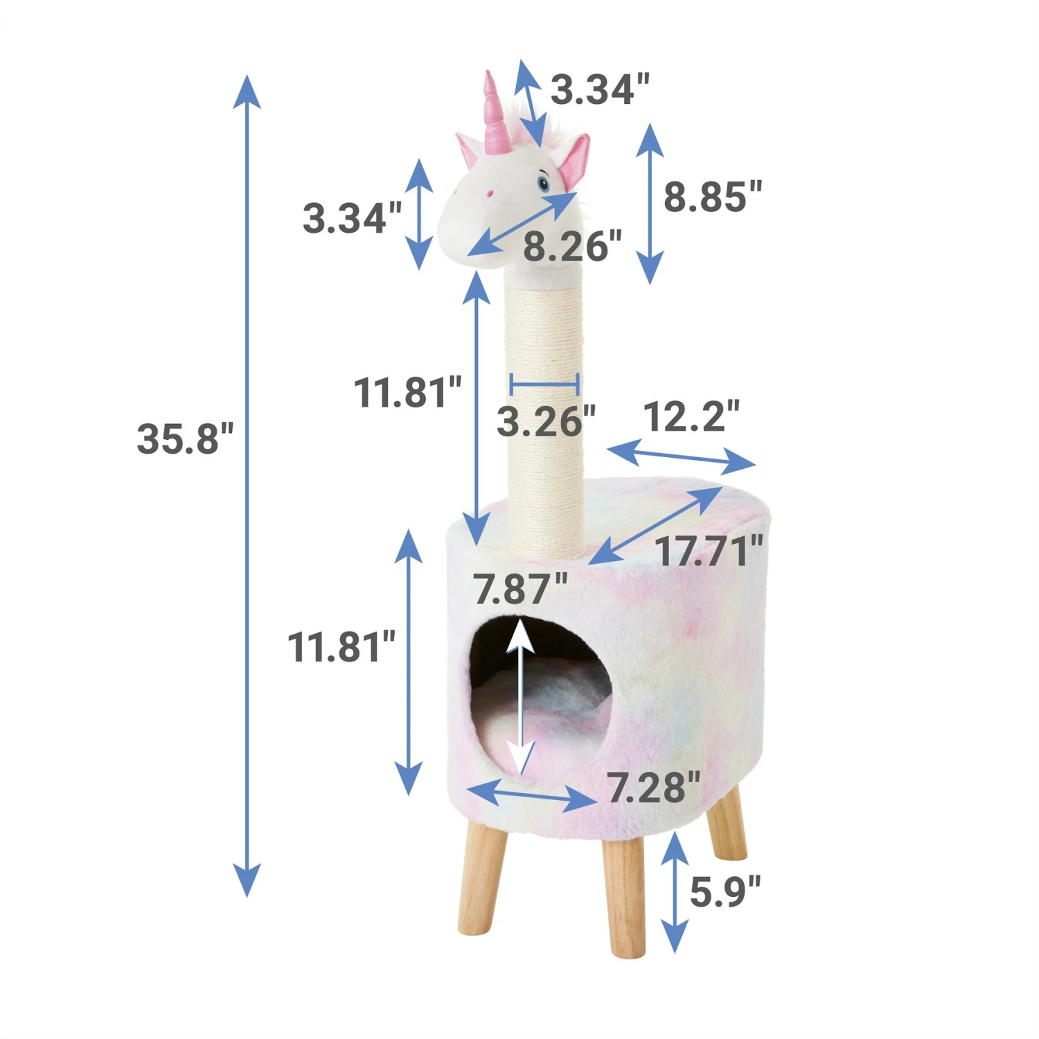 - Includes all the kitty amenities—a scratching post, a private condo and a perch at the top.