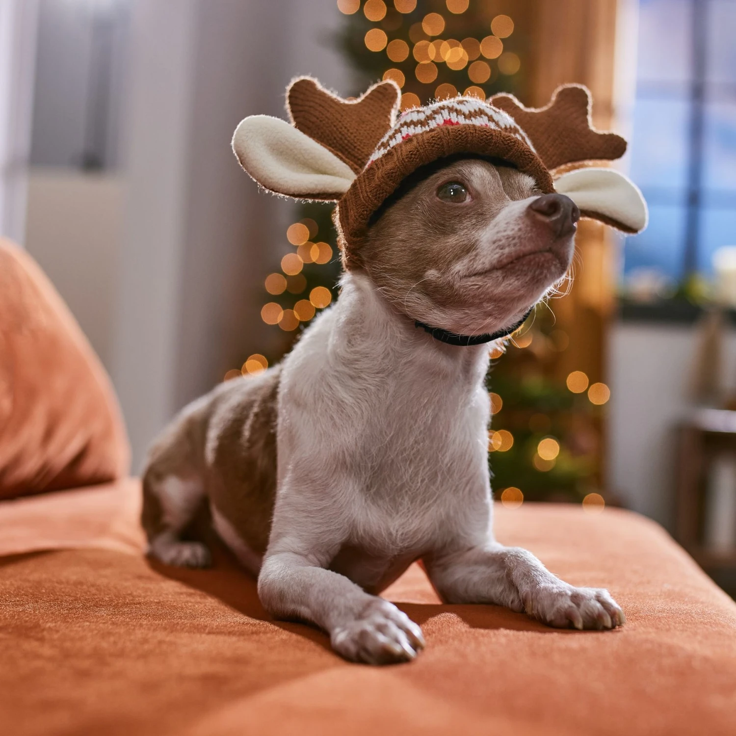 - This brown, knit hat features a Fair Isle pattern and antler accents at the top to make your aspiring reindeer feel more authentic.
