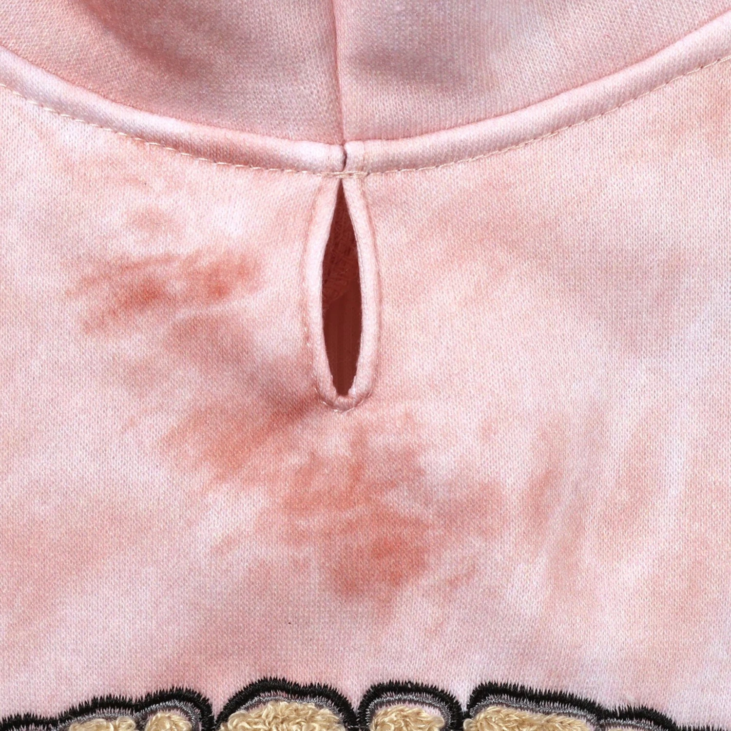 - Pullover hoodie features a beige-and-cream wash effect and “Pawsitive Vibes” applique at the chest, plus a touch of stretch for extra durability and comfort.