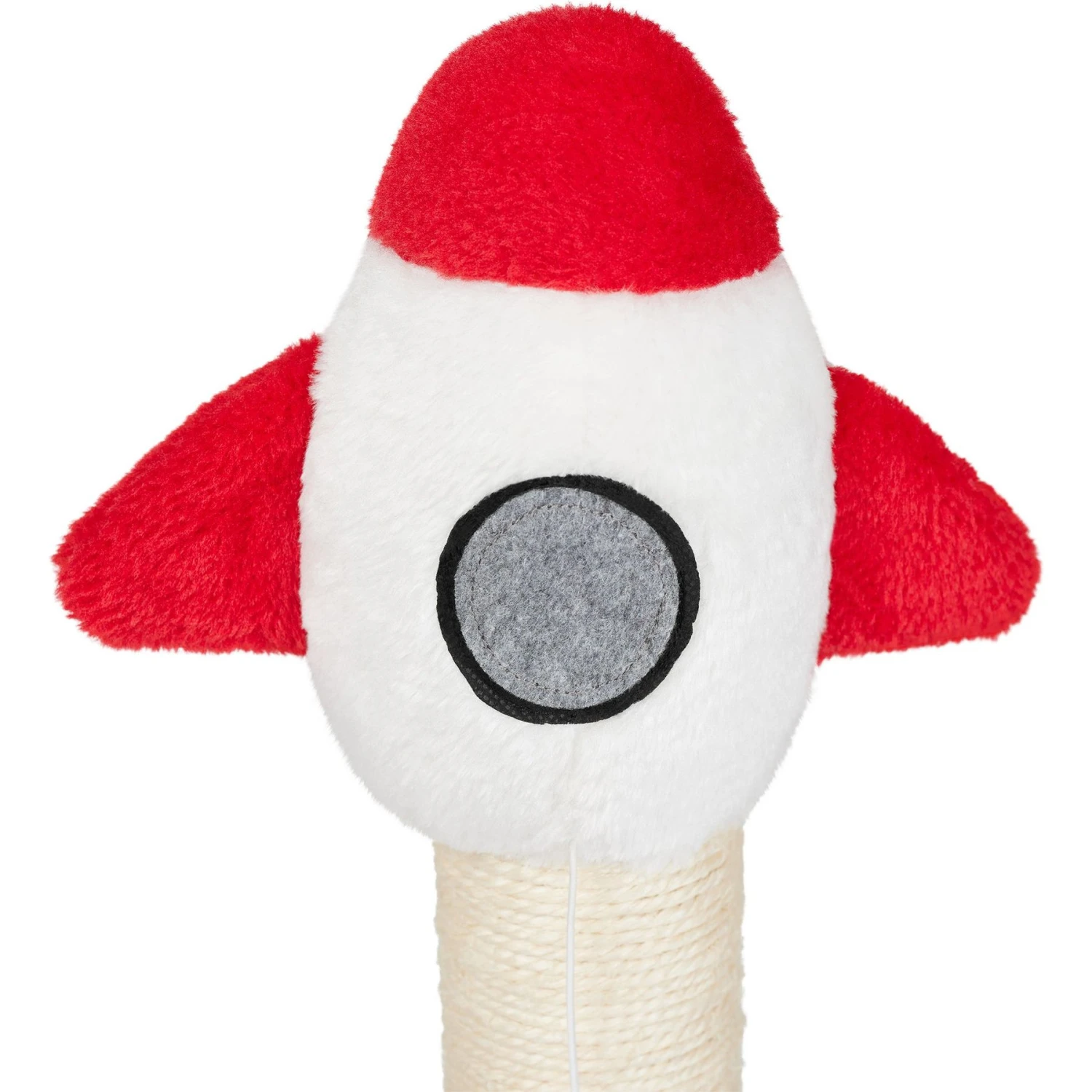 - Features a plush rocket topper with two flame toys—one that hangs and another that’s on a spring—along with the scratching post.